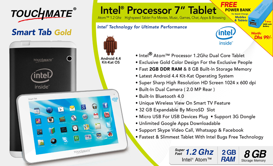 Atom™ 1.2 Ghz Highspeed Tablet For Movies, Music, Games, Chat, Apps & Browsing